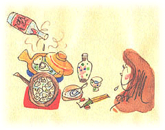 ハマグリの酒蒸しは、まず、新鮮なものを選び、砂を吐かせて貝殻をこすり合わせてよく洗います。よく水をきって器にハマグリを盛りつけ酒とだし汁と1対1(好みで加減する)加えてしっかり蓋をして蒸します。時間は強火で7分~8分というところ。貝の蓋が開いたらできあがりです。仕上げに刻んだアサツキをパラパラとふります。