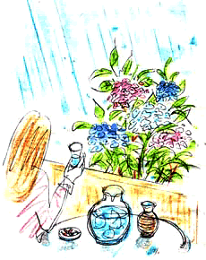 紫陽花(あじさい)が見頃を迎えています。梅雨時に咲くためでしょうか、紫陽花には「水」のイメージがあります。雨をはじいて艶を増した花、朝露に濡れた葉、しっとりとやわらかな地面。紫陽花を眺めると片手に傘を持っているような感じがすることさえあります。
