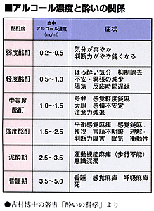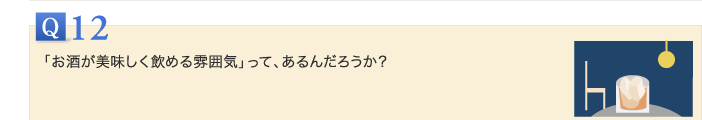 いろいろな効果が期待できる飲酒に、さらにいっそう楽しむための工夫があったら、その効果も倍増することでしょう。これは酔いの研究をするための実験の話ですが、鼠が自らの意思でお酒を飲む仕掛けを作るのに大変に苦労しました。無理に飲ませたり注射するのでは、自然の酔いにはならないんです。試行錯誤の末、おそらくこれは世界でも初めての成功例だと思いますが、落ち着いた色彩の所で、多少照明を暗めにし、室温を少し低くする、そして雄と雌とを一緒にしてあげる。すると、鼠は自分から飲みだし自然に酔いはじめました。人間にとってもこれはまったく同じことがいえます。つまり、お酒は落ち着いた雰囲気で、決して一人ではなく、仲間(できれば異性)と一緒に、気楽に、料理を食べながら飲むこと。それが、もっともお酒がおいしい飲み方ということになります。ただし、お互いに無理強いやイッキ飲みはしないし、させない。適量をそれぞれのぺ-スで楽しみたいものです。