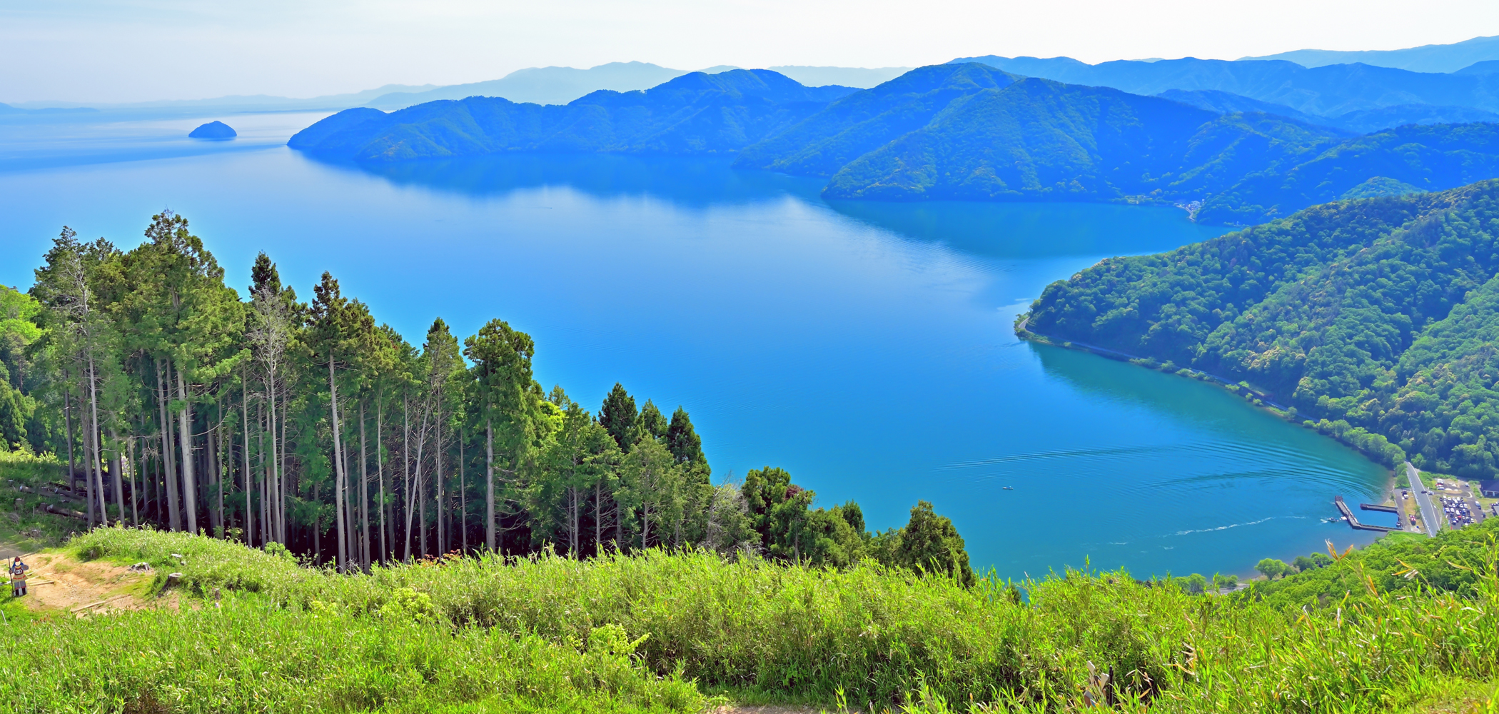 滋賀県は日本列島のほぼ中央に位置しており、中央部には近江盆地と、県土のおよそ6分の1の面積を占める、日本最古で最大の湖である琵琶湖があります。この琵琶湖の周囲は、比良山地・比叡山地・伊吹山地および鈴鹿山脈といった1,000メートル級の山々に四方を囲まれています。