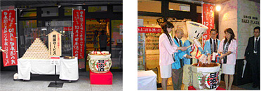 10月1日が「日本酒の日」であることはご存知でしょうか。昭和53年に制定されて以来、今年で29年目を迎えます。この「日本酒の日」を記念して、正午と午後5時の2回、吉例の鏡開きを行い、参加者に樽酒を振る舞います。