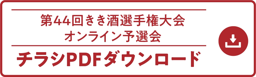| 選考方法 | 下記の方法により対象県の代表者を選出します。 ●オンラインによる日本酒テスト(30問・20分・選択式)を実施し、得点の最も高い者を代表選手とします。 ●得点の最も高い者が複数あった場合、公正な抽選により代表選手を選出します。 ※代表者の選定結果の発表は、後日参加者に対しメール等で個別に行います。 ※代表選手の選定に際し、上記の応募・参加資格(年齢や住所等)を確認するため免許証等の公的証明書のご提出を求めることがあります。 |